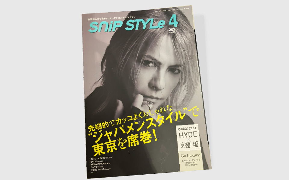 2026年3月1日発行 美容業界月刊誌『SNIPSTYLE』4月号『先端的でカッコよくおしゃれな「ジャパメンスタイル」で東京を席巻!』特集にて「イケメン製作所」のメンズメイク、メンズ眉毛、ヘアアット、ステルス(バレないかつら)が紹介されました。