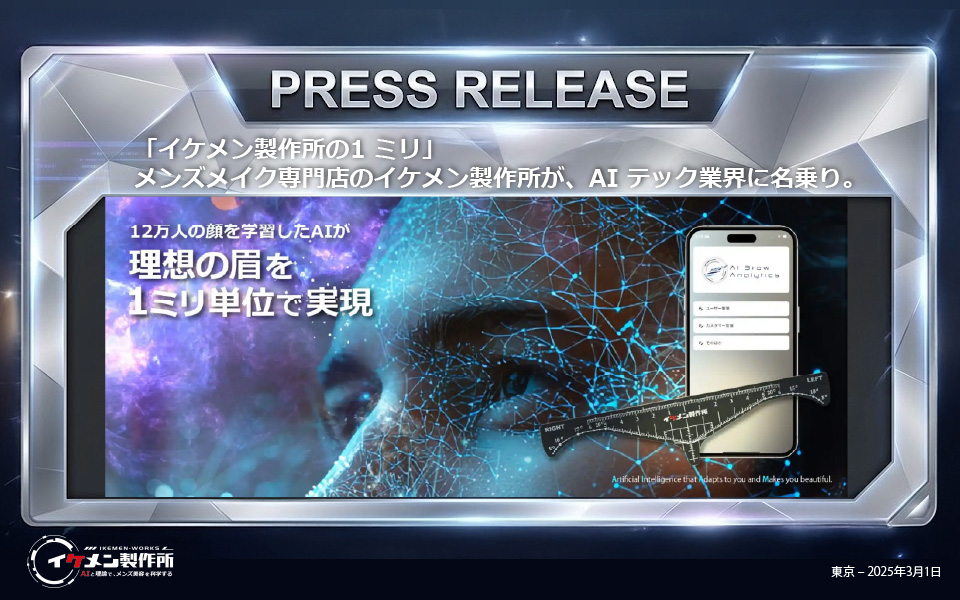 【東京 ‒ 2025年3⽉1⽇】メンズメイク専⾨店「イケメン製作所」を運営する株式会社オシアスターは、メイクや眉⽑のスタイリング施術誤差を1ミリ程度まで抑える⾰新的AI システムの独⾃開発に成功。サロン運営の枠を超えた美容系AIテック企業へ⽣まれ変わろうとしています。